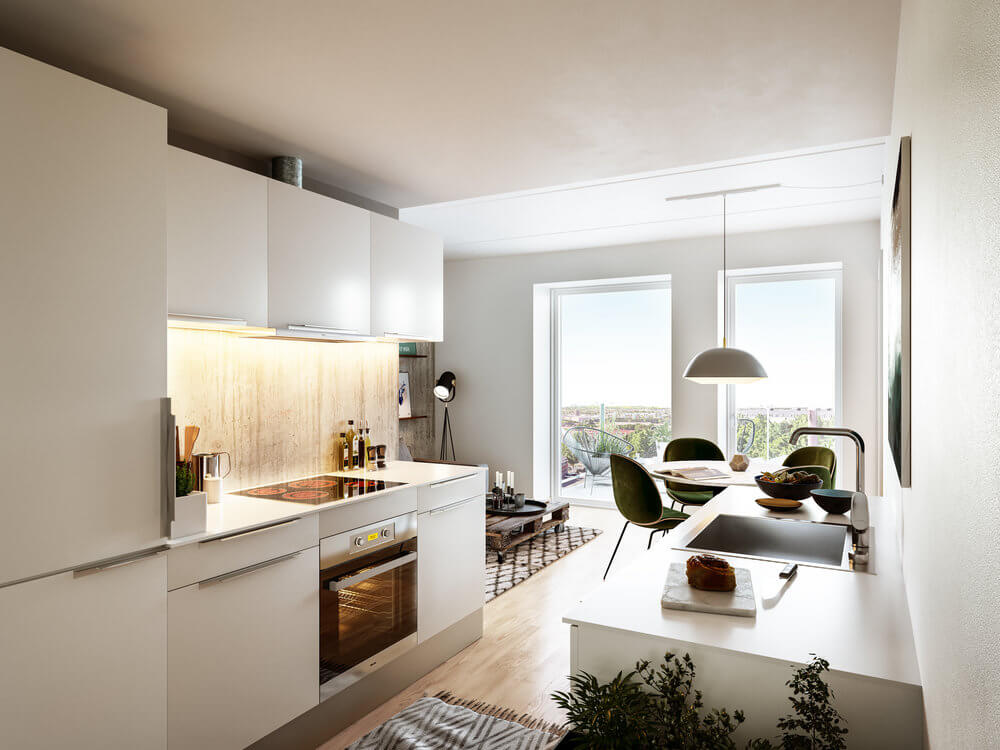 ”Mange er i øjeblikket ved at afklare deres fremtidige boligsituation, f.eks. på grund af studiestart, og det mærker vi på interessen for lejlighederne, der står indflytningsklar på dette tidspunkt. Min opfattelse er også, at Nabolagets beliggenhed med forskellige uddannelsesinstitutioner meget tæt på, og midtbyen indenfor cykelafstand, står højt på ønskelisten. Derudover har Nabolaget et højt kvalitetsniveau, hvor man får rigtig meget for sin husleje, f.eks. rummelige køkken-alrum og store altaner på ca. 6 m2.”, uddyber han.