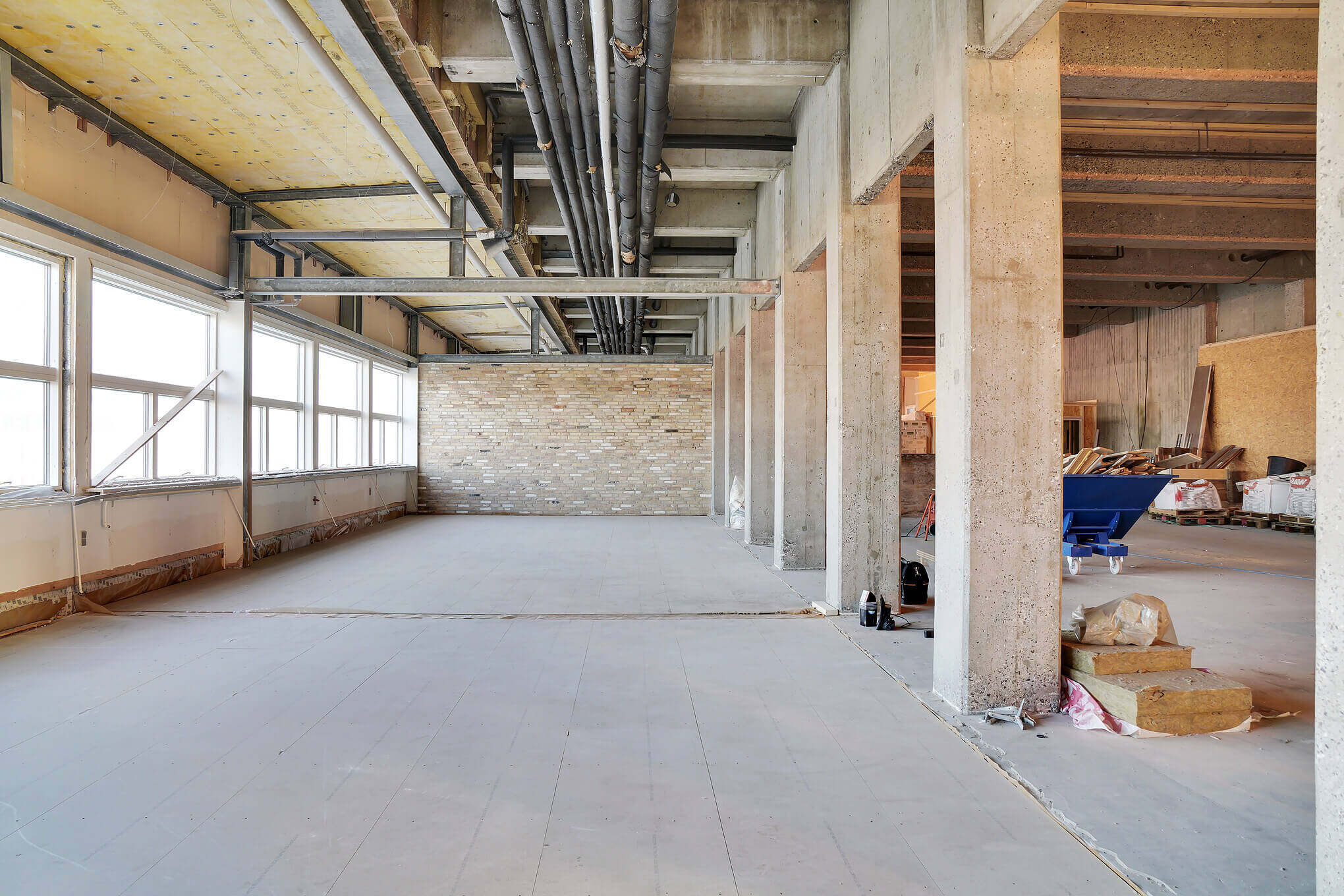 Lejemålene får en rå og industriel New Yorker-stil med afrensede betonsøjler og -lofter, nye gulve, og facaden åbnes op med flere vinduespartier.