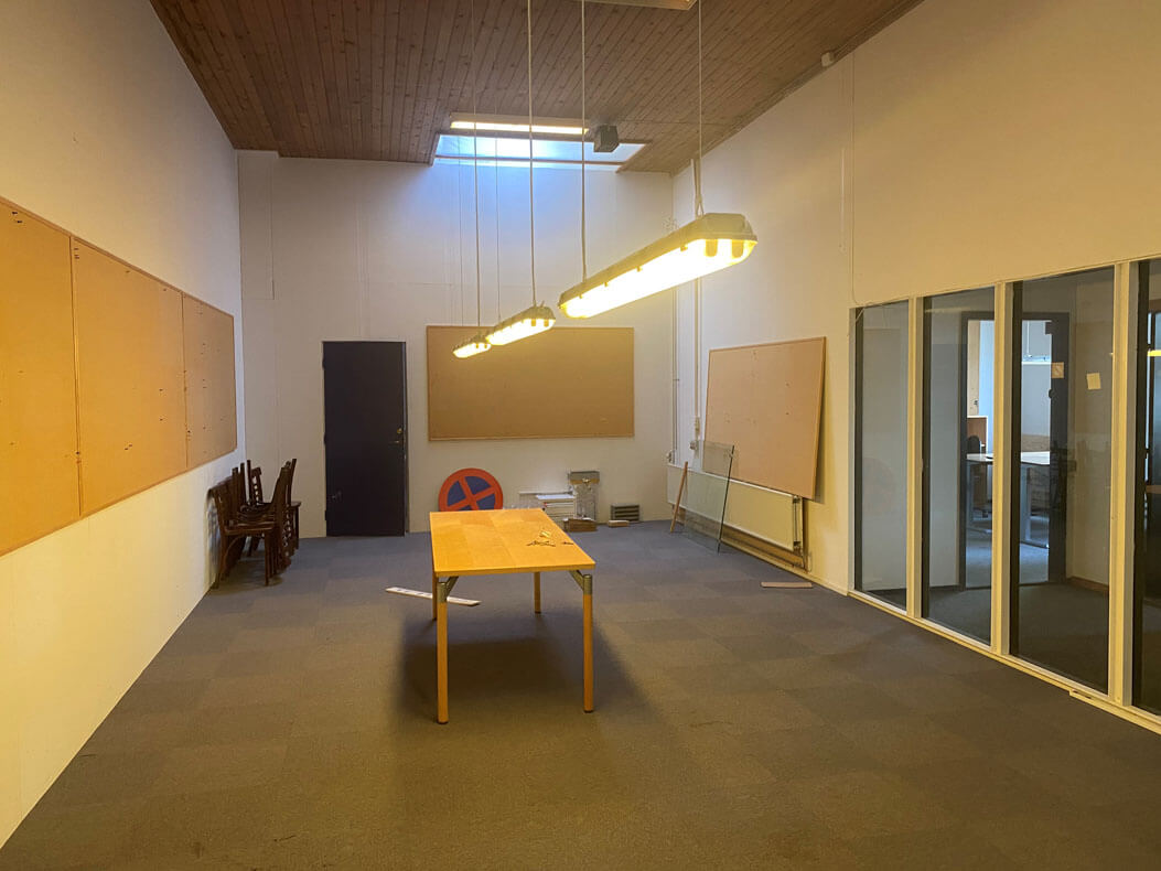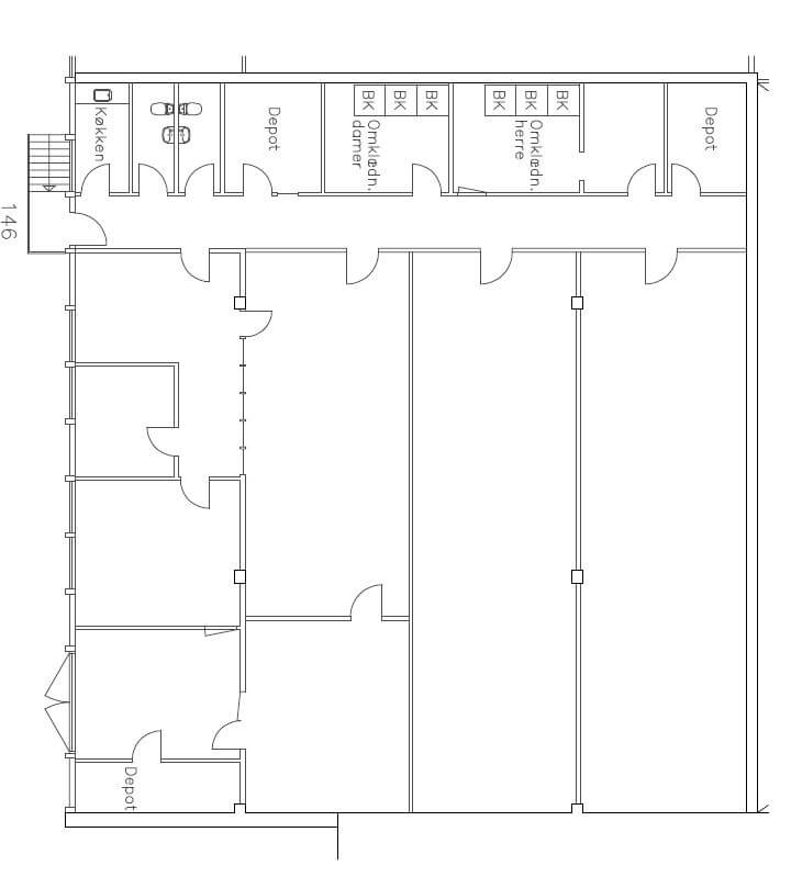 Lejemålet består af 3 aflange lokaler, der tidligere har været benyttet til kantineområde, omklædning og mødelokale. Derudover består lejemålet af 5 opbevaringsrum/kontorrum, 3 depotrum, køkken, 2 omklædningsrum og 2 toiletter. Der er desuden mulighed for parkering i området.