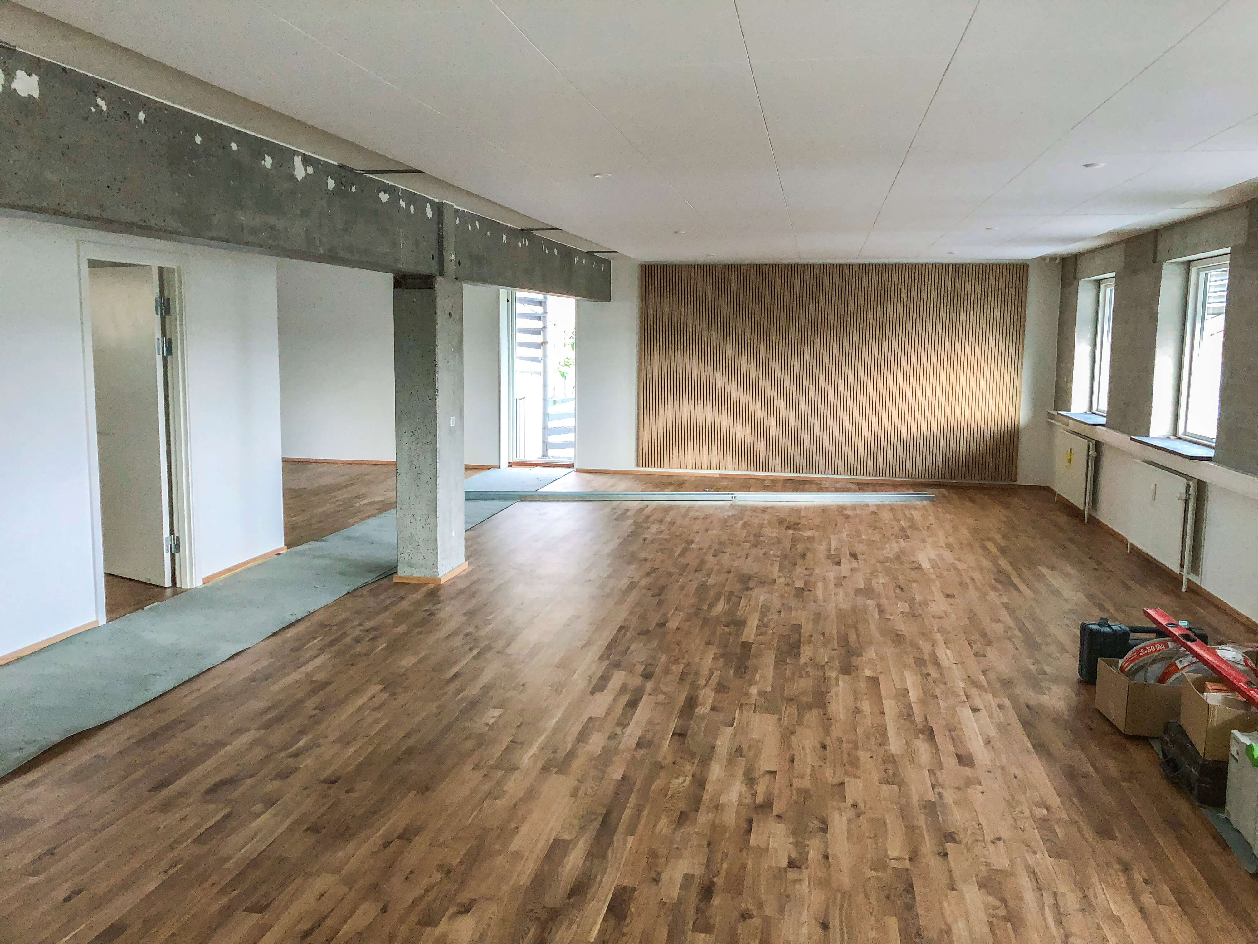 Vi har løbende med overtagelserne givet mange af lejemålene og bygningerne på Klamsagervej en kærlig opgradering. Her tilføjer vi moderne og naturlige kvalitetsmaterialer og skæve detaljer i sædvanlig Olav de Linde-stil.